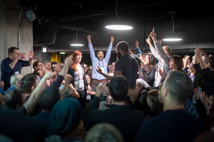 The crowd goes wild at the ORDCamp 2019 rock, paper, scissors tournament.