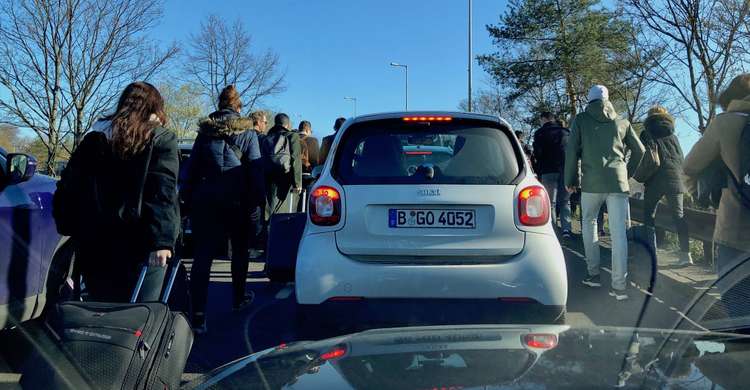 The April fool’s day joke on Berlin this year is a full-on BVG strike, shutting down the U-Bahn, tram, and bus systems in the city. The resulting rush for taxis left my friend without a way to get to the airport this morning, so I drove her there. At least I attempted to. It’s usually a twenty-minute drive to Tegal. After almost an hour, however, we got stuck on a highway offramp for a half hour just a kilometer away from the terminal.